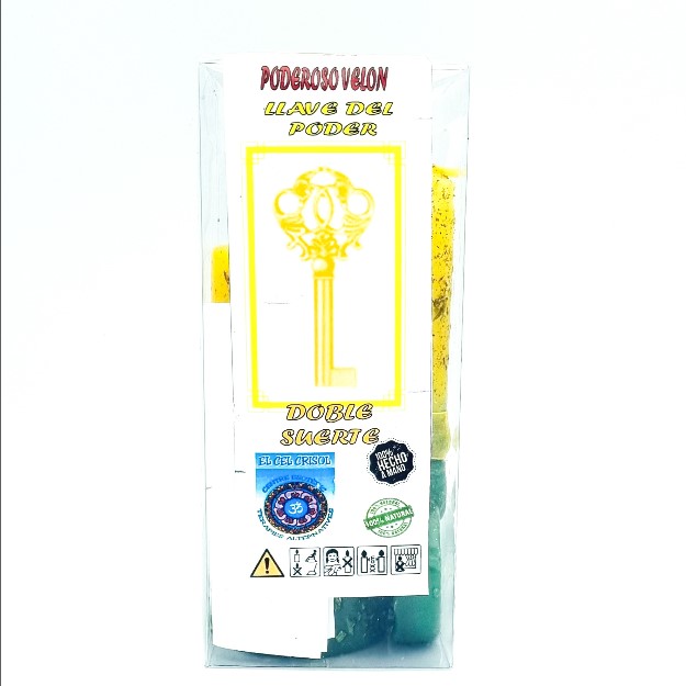 El Velón Llave del Poder Doble Suerte está indicado para abrir caminos en ventas, negocios, trabajos y para atraer buena suerte en juegos de azar. Este velón combina elementos esotéricos tradicionales que son conocidos por su capacidad para desbloquear oportunidades y promover la prosperidad. Con su forma de llave y los colores amarillo y verde, simboliza la apertura de nuevas oportunidades y el flujo de energías positivas.